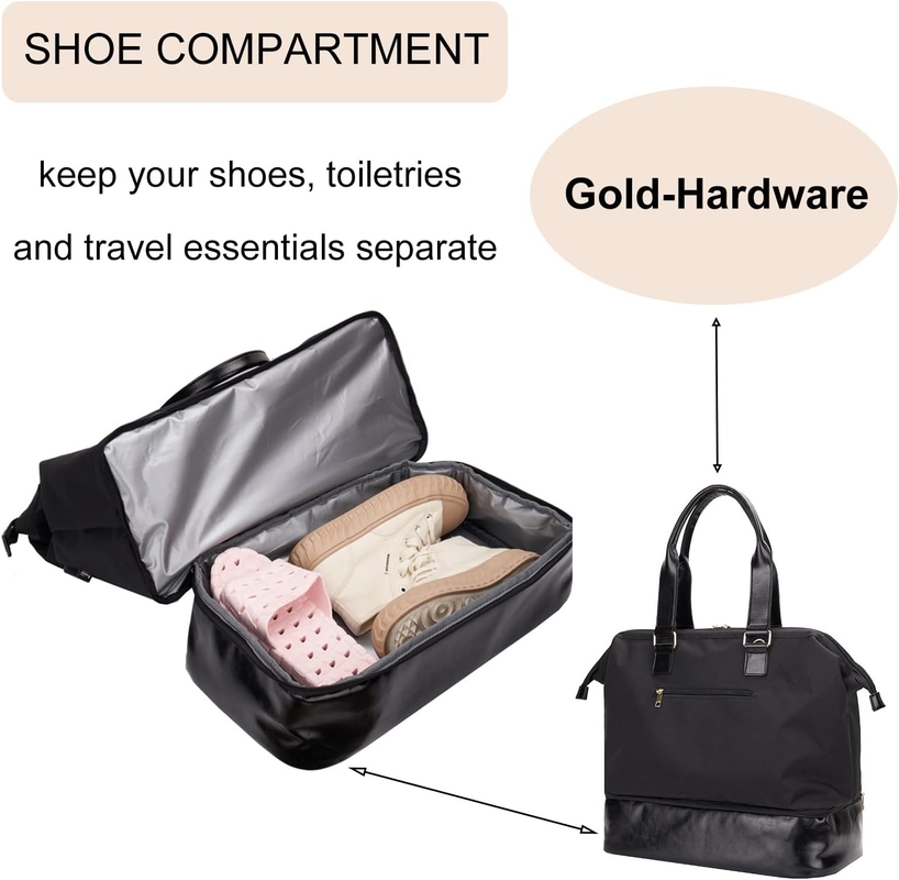 le compartiment inférieur est conçu pour séparer vos chaussures, articles de toilette et articles de voyage essentiels